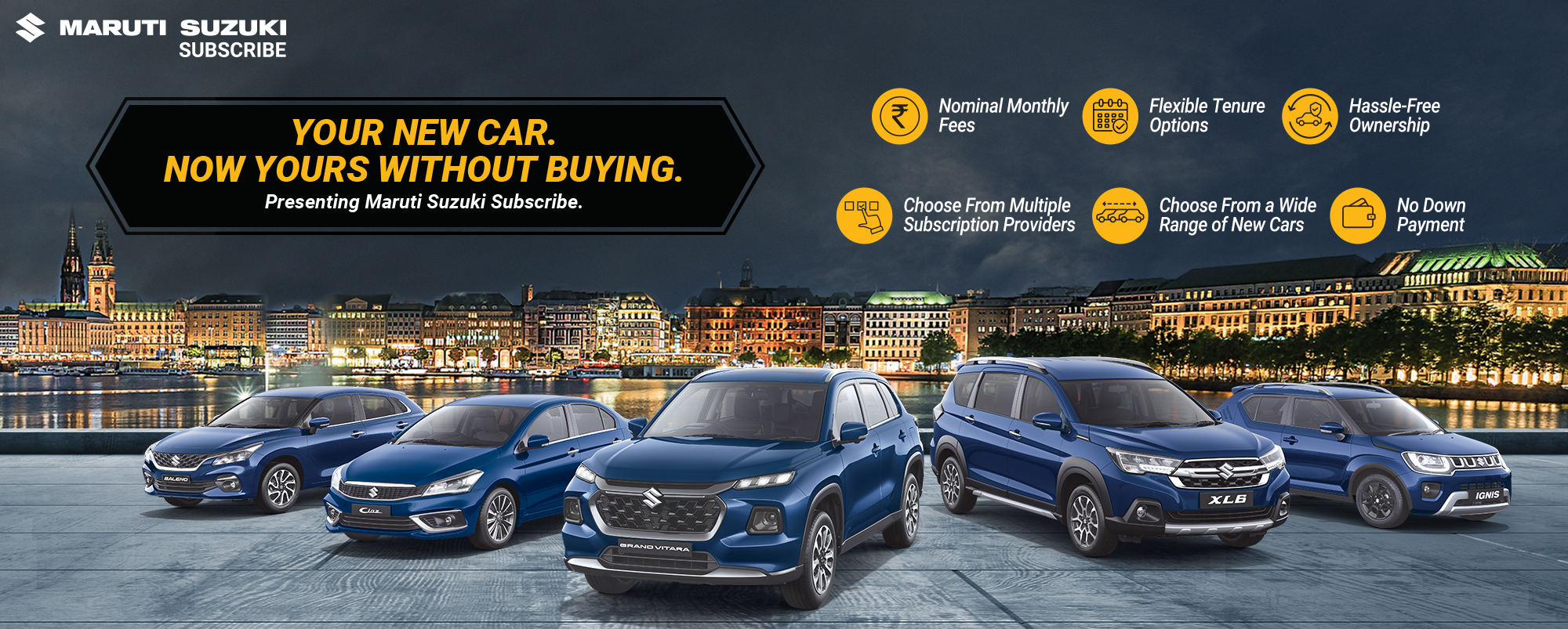 Maruti Suzuki Subscribe enables all customers to enjoy driving their preferred Maruti Suzuki cars without having to deal with all the financial responsibilities that come with owning a car.All you need to do is opt for a monthly subscription plan at a fixed monthly fee, which includes the routine maintenance and insurance costs, and choose a flexible tenure. At Unitara Motors in, AB Road, Dewas, all Hatchback, Sedan, SUV, the MUV models line-up includes Baleno, Invicto, EVitara, Jimny, Ciaz, Ignis, Fronx, Grand Vitara, XL6. Here, you will enjoy Maruti Suzuki Subscribe benefits such as: